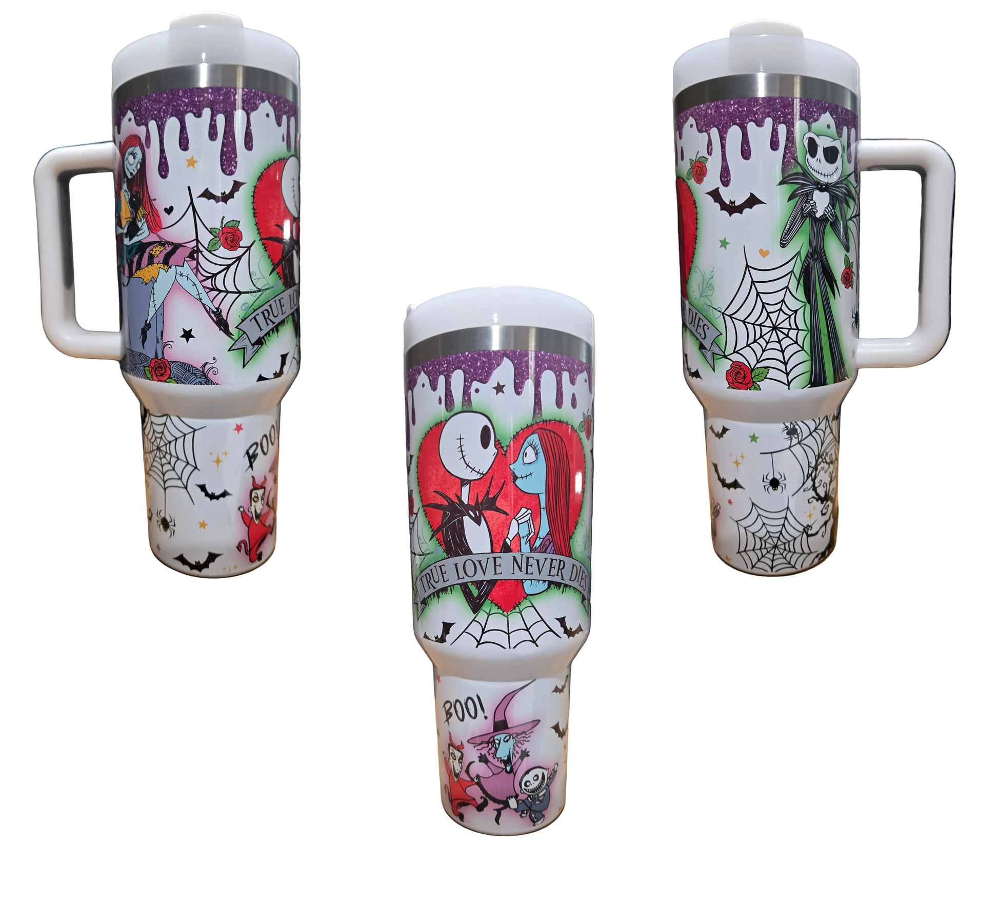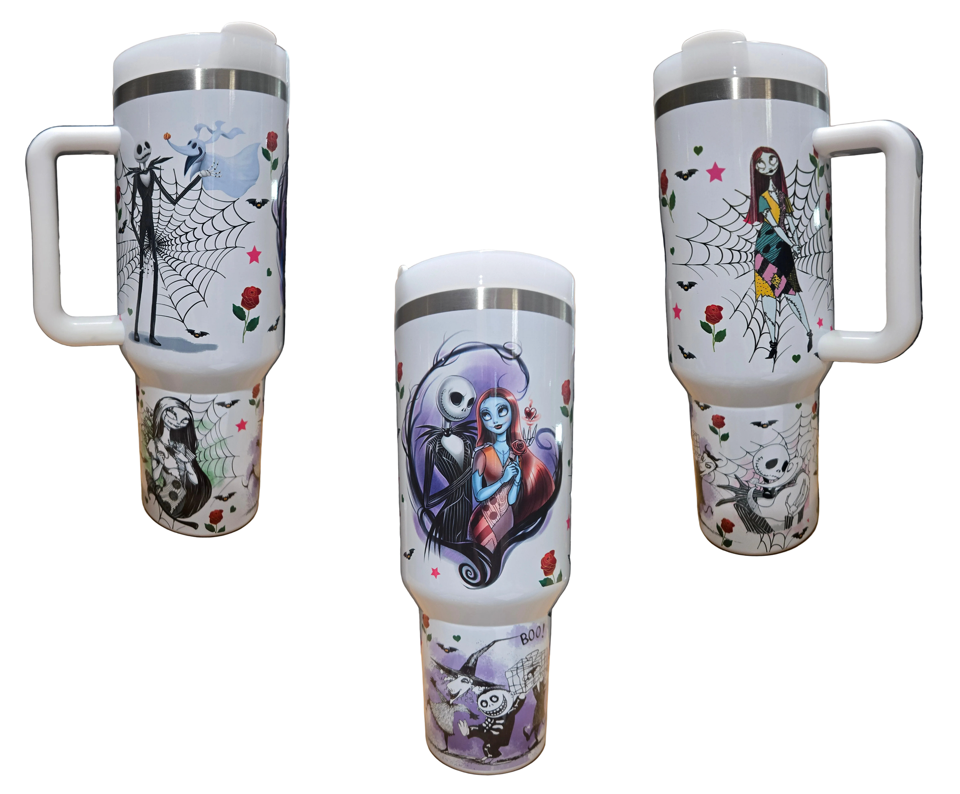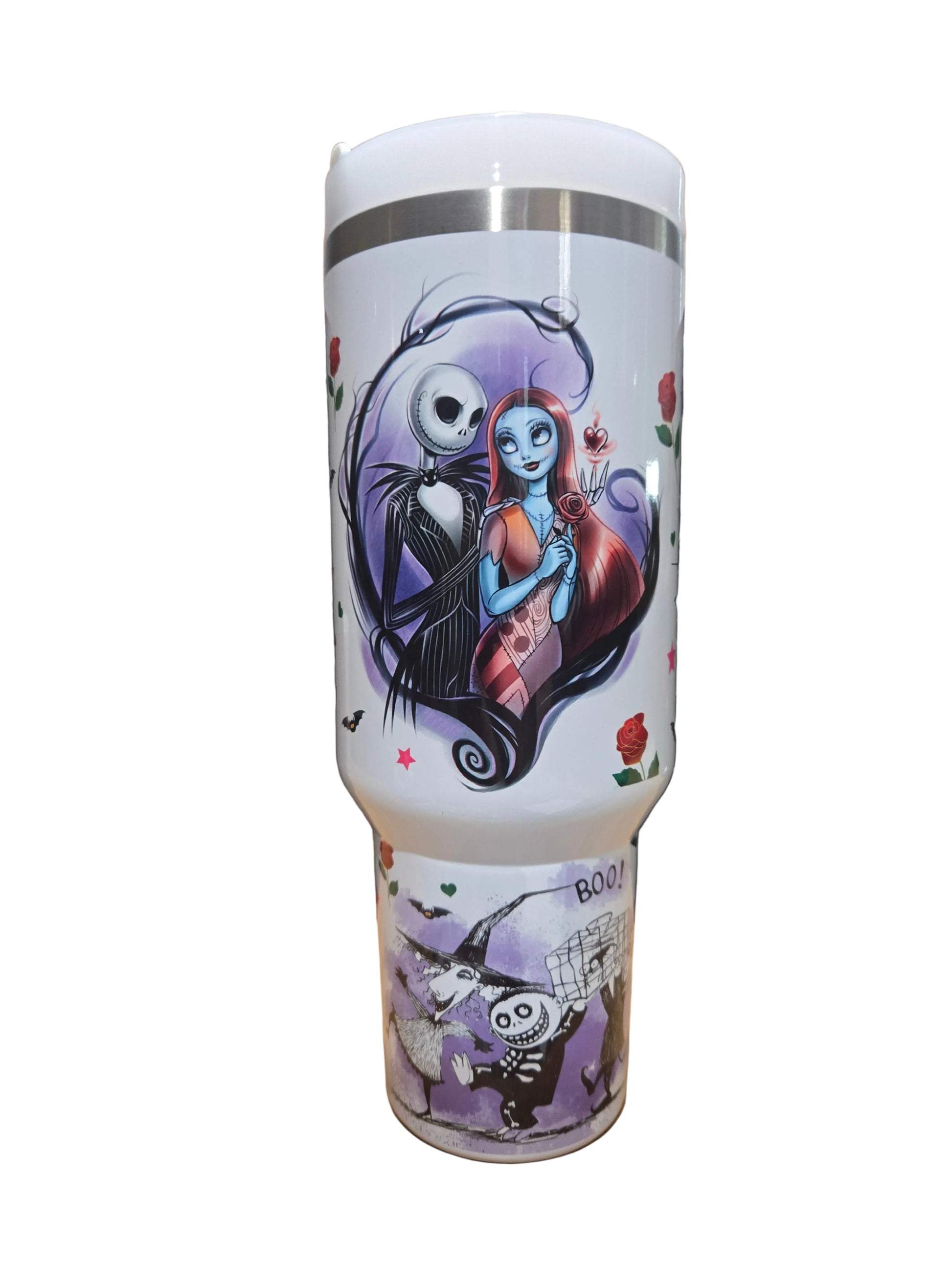 NMBC 40oz Insulated Tumbler Embrace the spooky-chic vibes with this 40oz insulated tumbler inspired by everyone's favorite Halloween town. Keep your favorite beverages at the perfect temperature while channeling Skellington energy all year long. Double-wall insulation keeps drinks cold for hours or hot when you need it, making it perfect for coffee runs, road trips, or just vibing with your dark side. Durable construction means this tumbler is built to last through countless adventures. Whether you're a devoted fan or just love a little gothic flair in your drinkware collection, this is the ultimate companion for any occasion.
